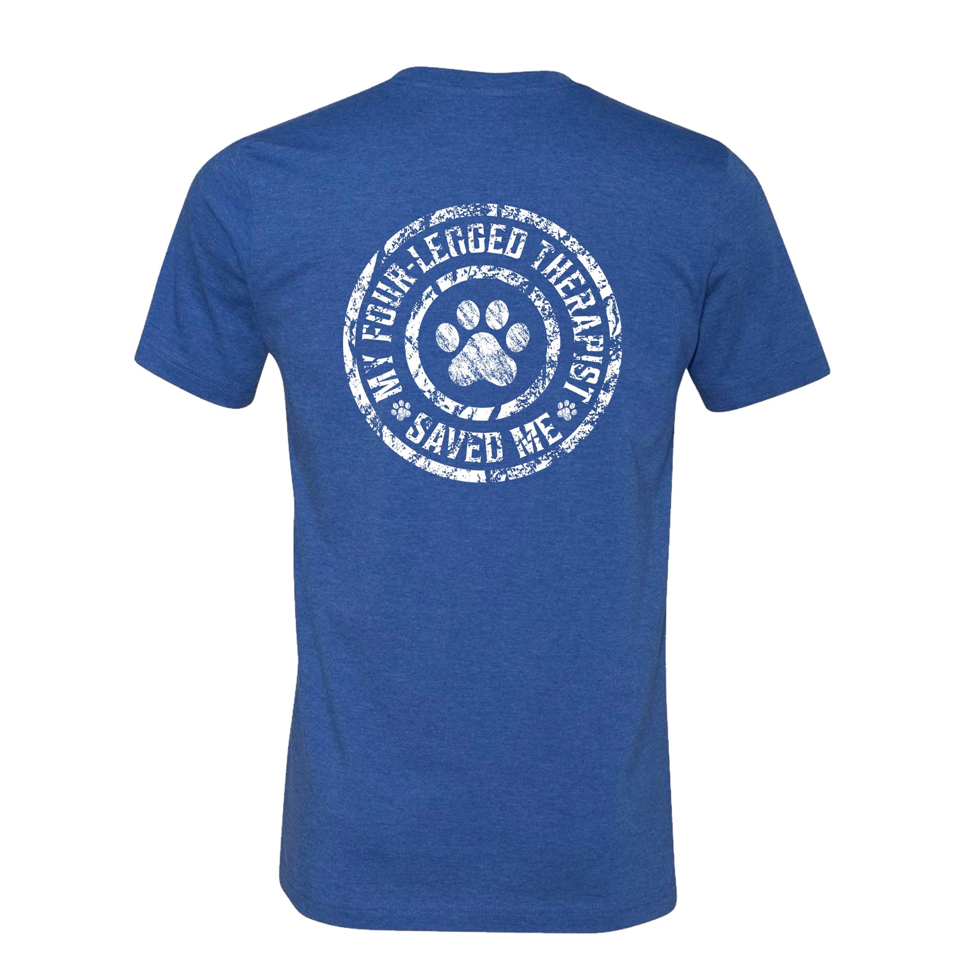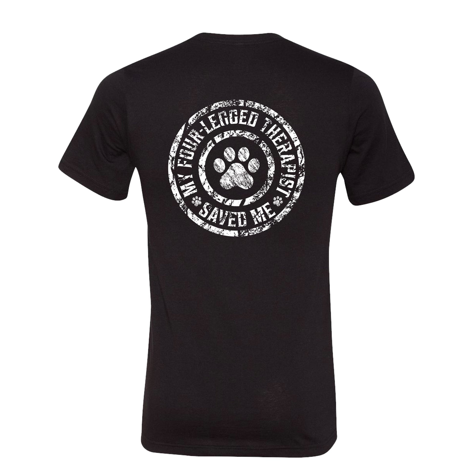 Our distressed Therapist Has Paws T-shirt is great for animal lovers and supporters of mental health. This crewneck, short-sleeved t-shirt is available in black, dark gray, midnight navy, true royal, and heather olive. Please review the size chart in the image below. The purchase of this item supports a non-profit that provides assistance to individuals with supportive animals with a 10% donation.
